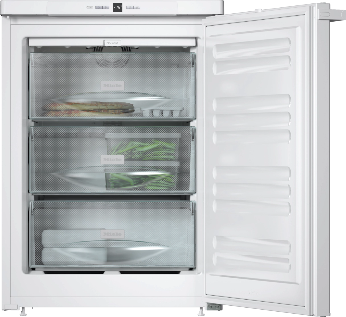 Отдельностоящая морозильная камера с функциями NoFrost и SuperFrost для умной заморозки с максимальной энергоэффективностью.