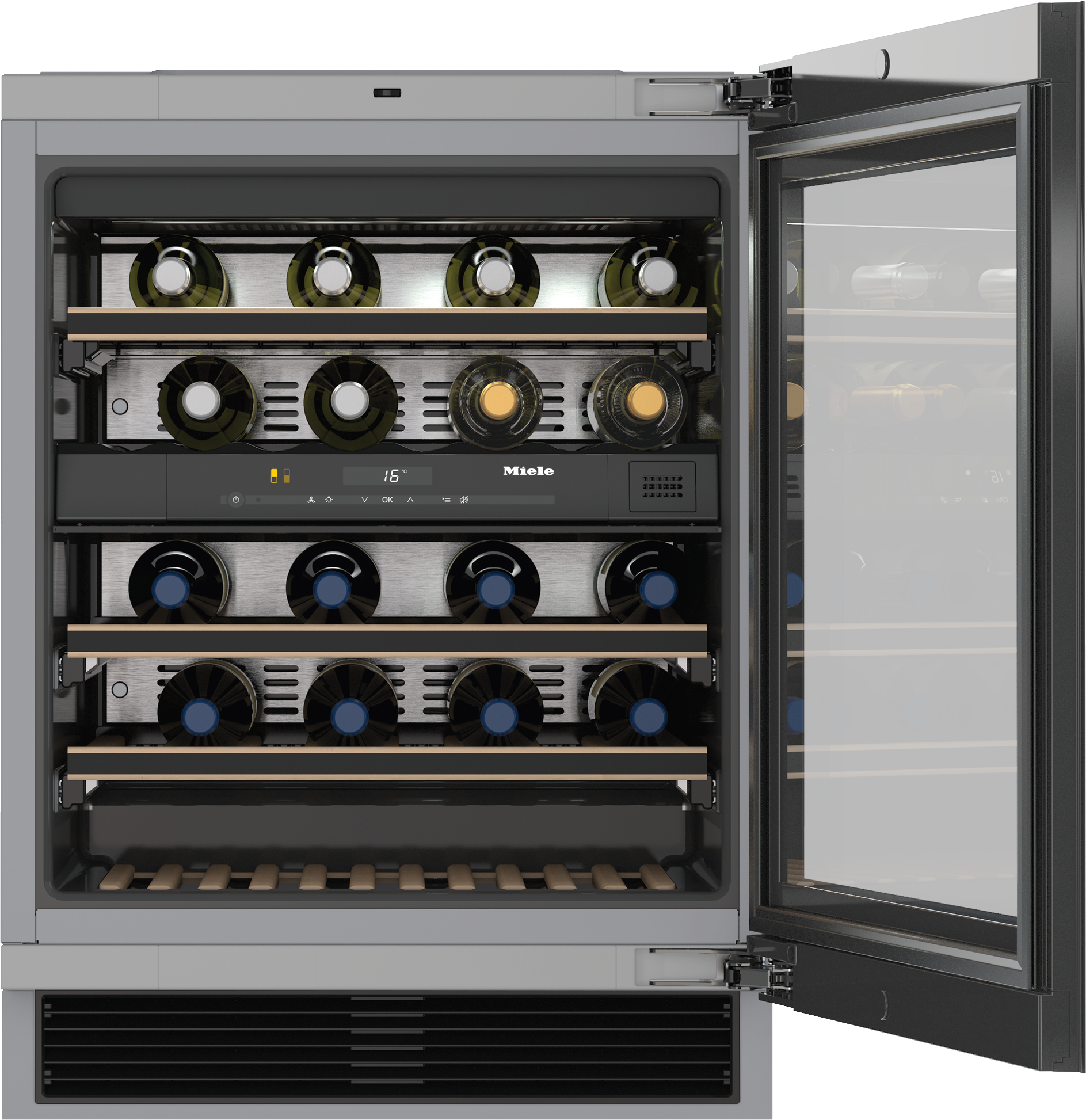 Подстольный винный шкаф с FlexiFrame и Push2open для большей гибкости и высококачественного дизайна.