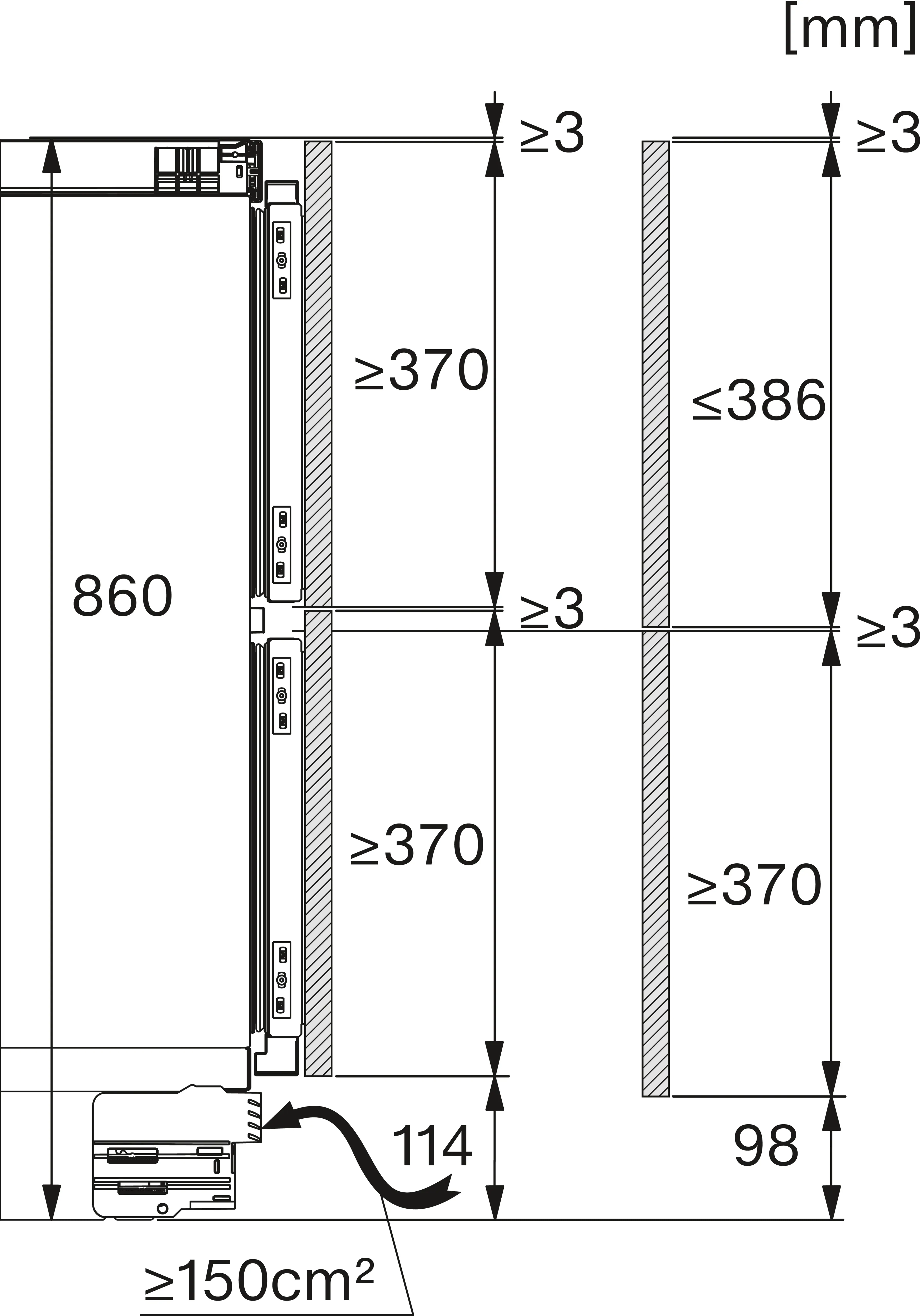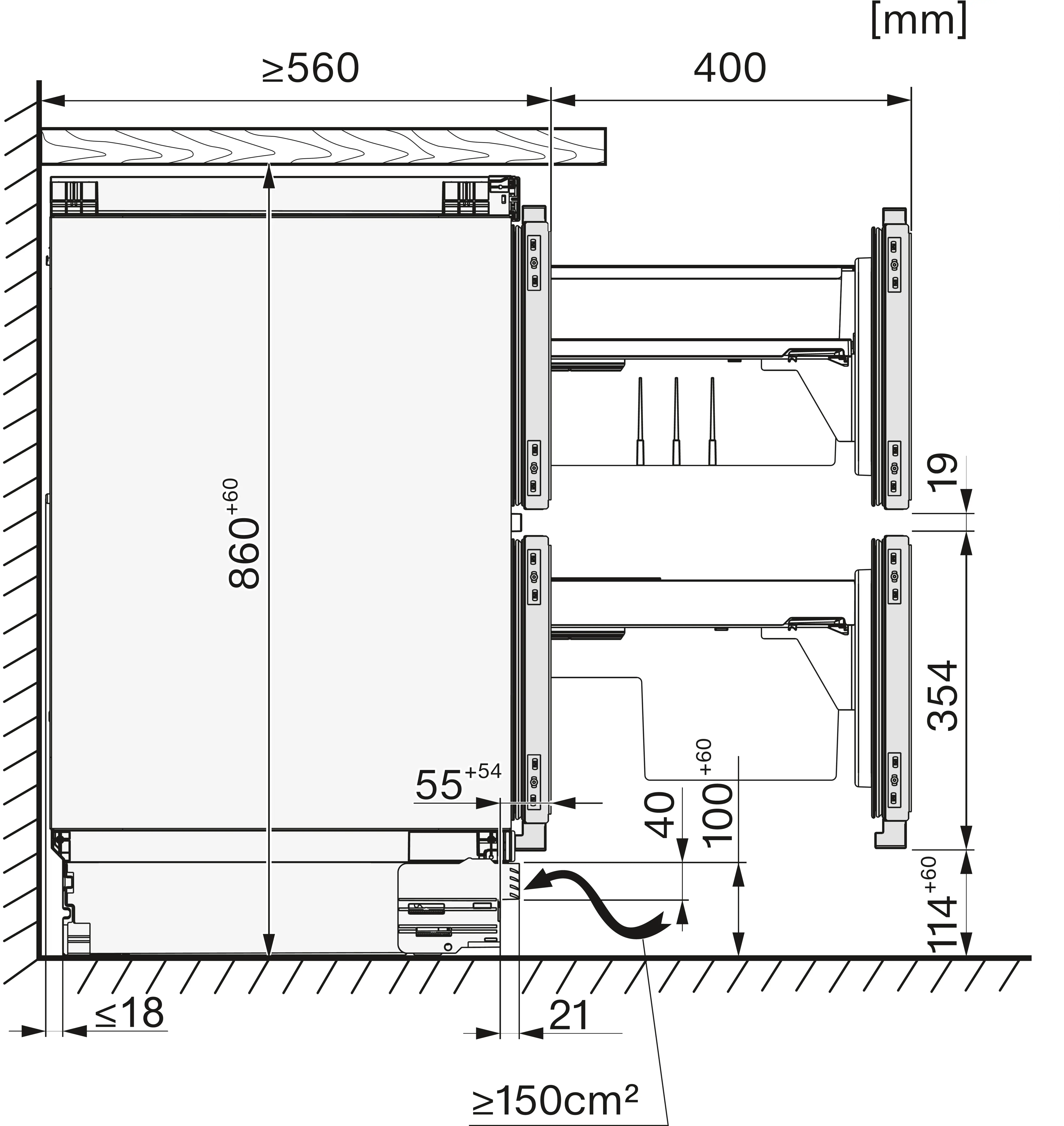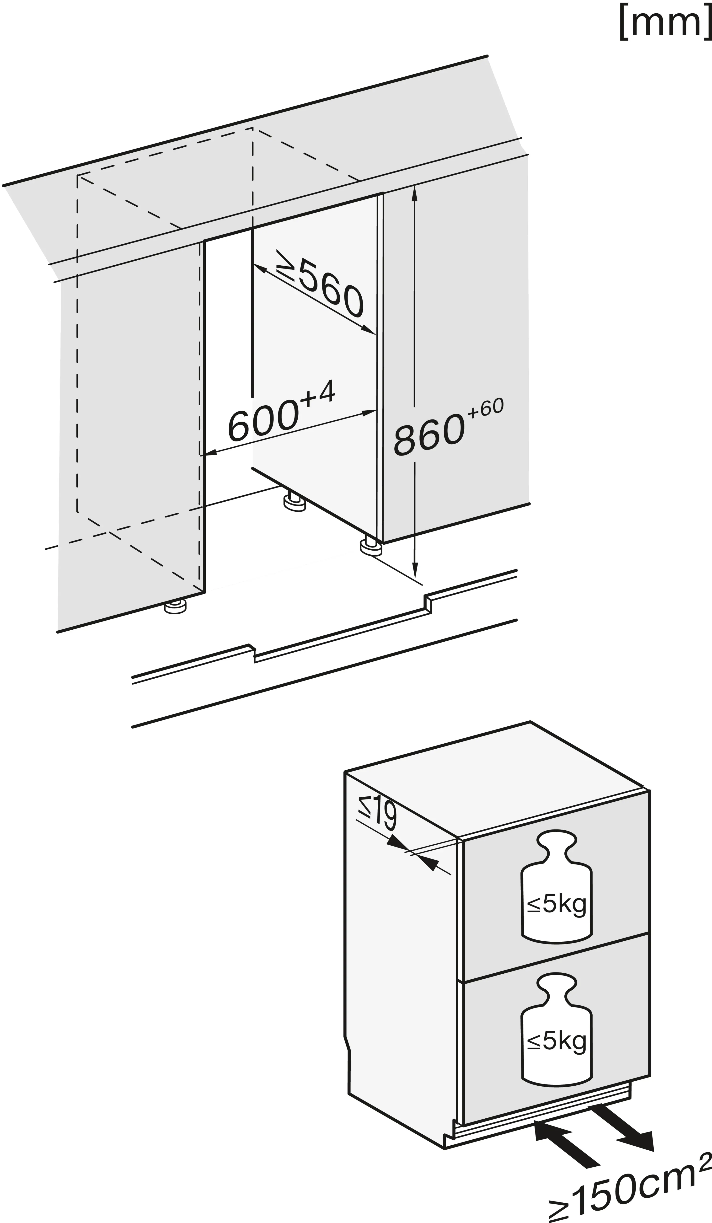 Установка встраиваемого бытового холодильника/морозильника