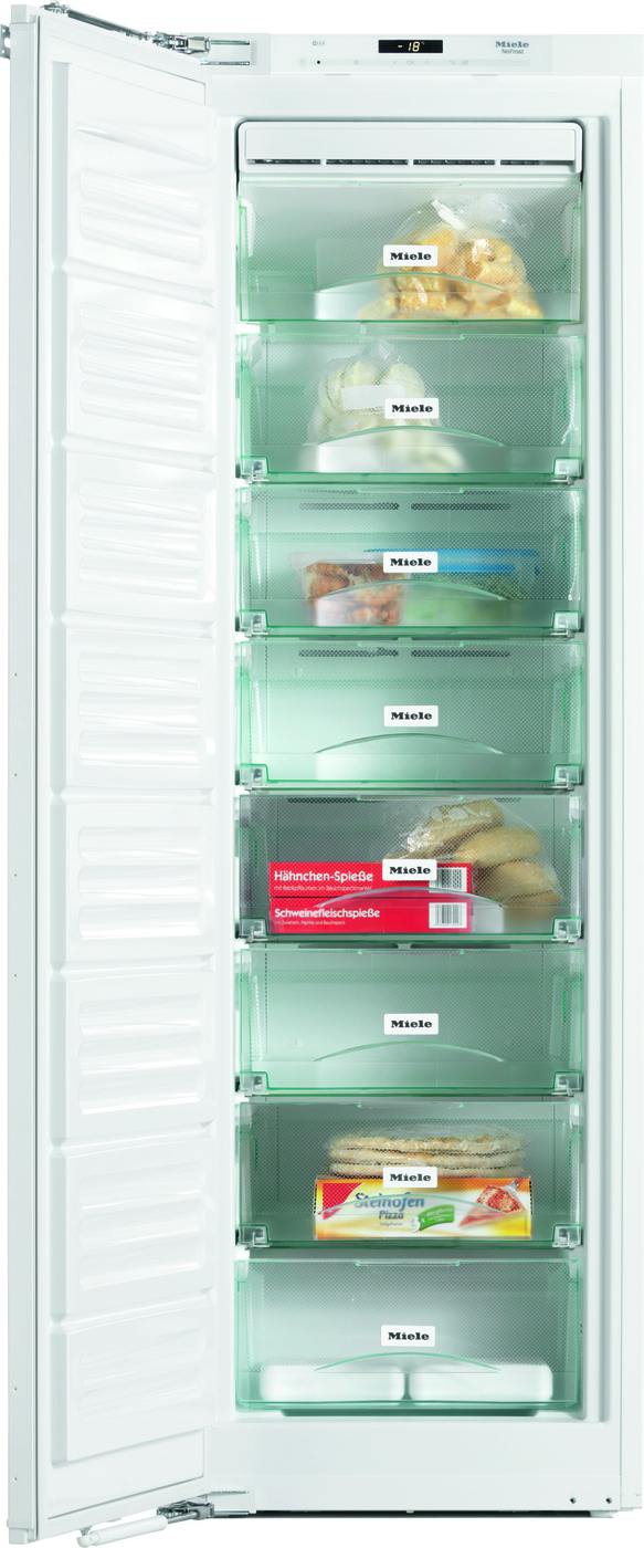 Встраиваемый морозильник Жесткое крепление мебельного фронта Дверной упор переставляемый Размеры ниши (В х Ш): 1772-1788 х 5560-570 мм Режим суперзамораживания, технология NoFrost 8 морозильных боксов Система VarioRoom Электронное управление TouchControl LED-подсветка Доводчик двери SoftClose Форма для льда, аккумулятор холода Страна-производитель: Германия Гаратия 2 года