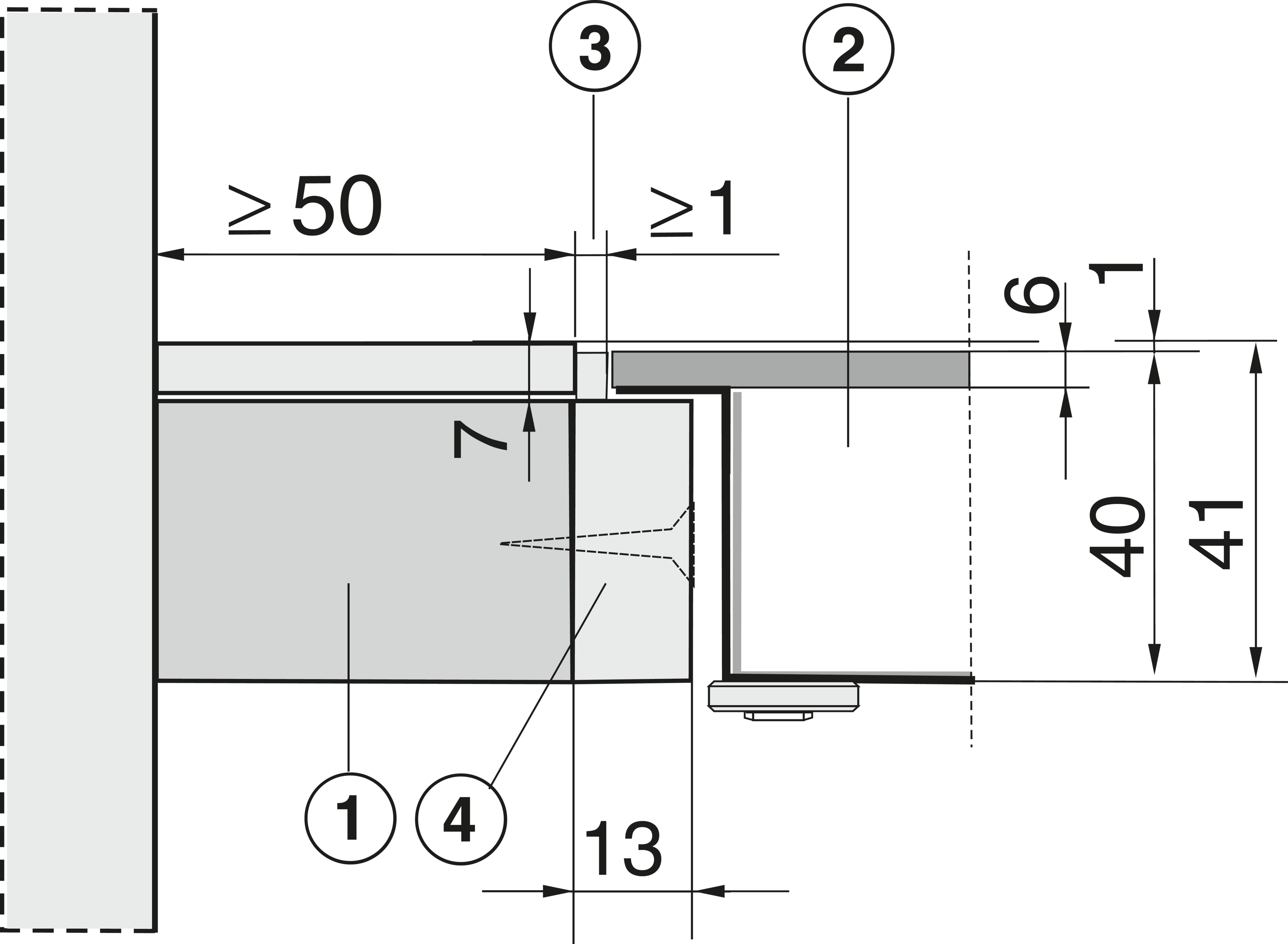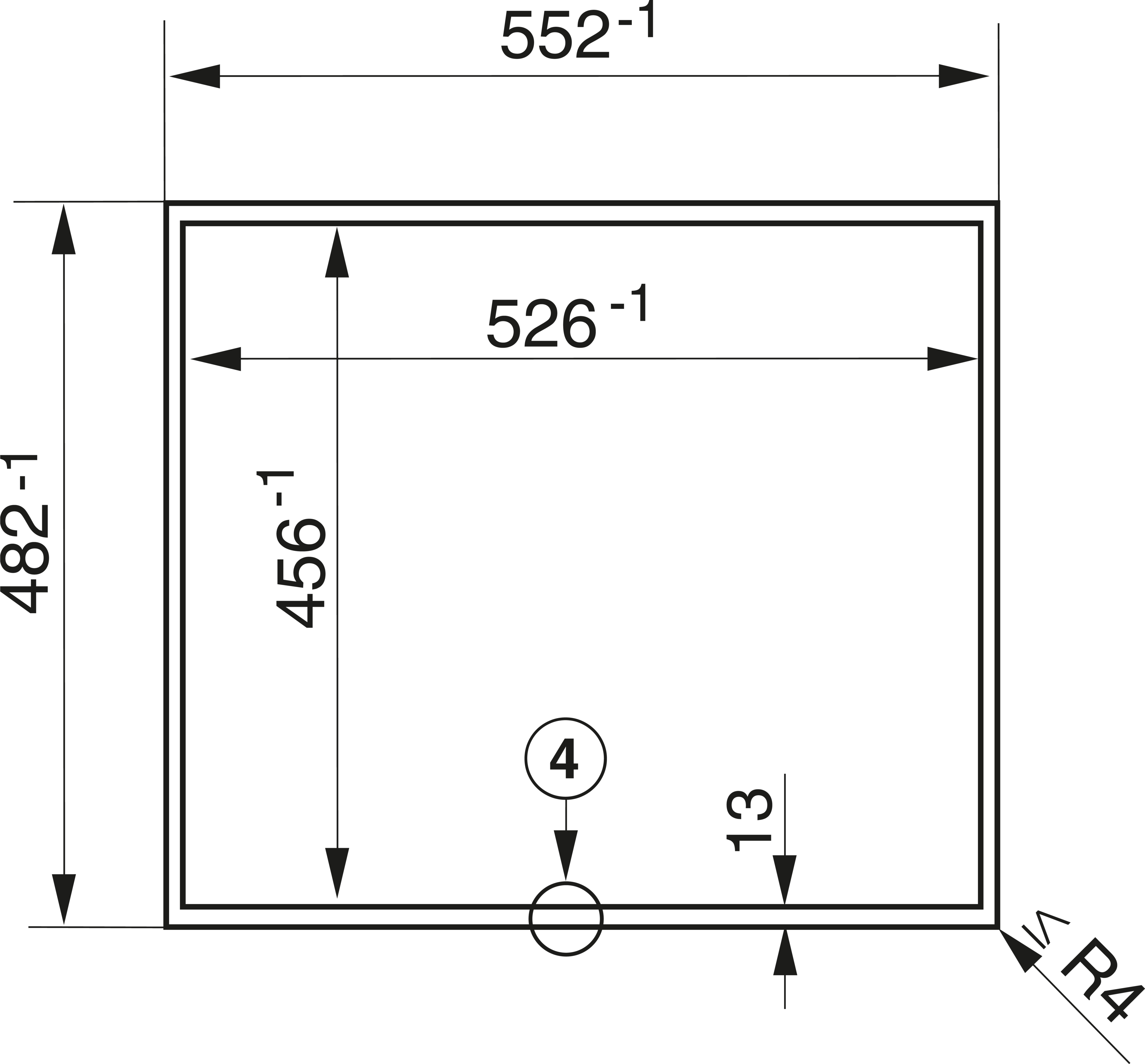 Внутренние размеры выреза в мм (глубина) для встраивания заподлицо