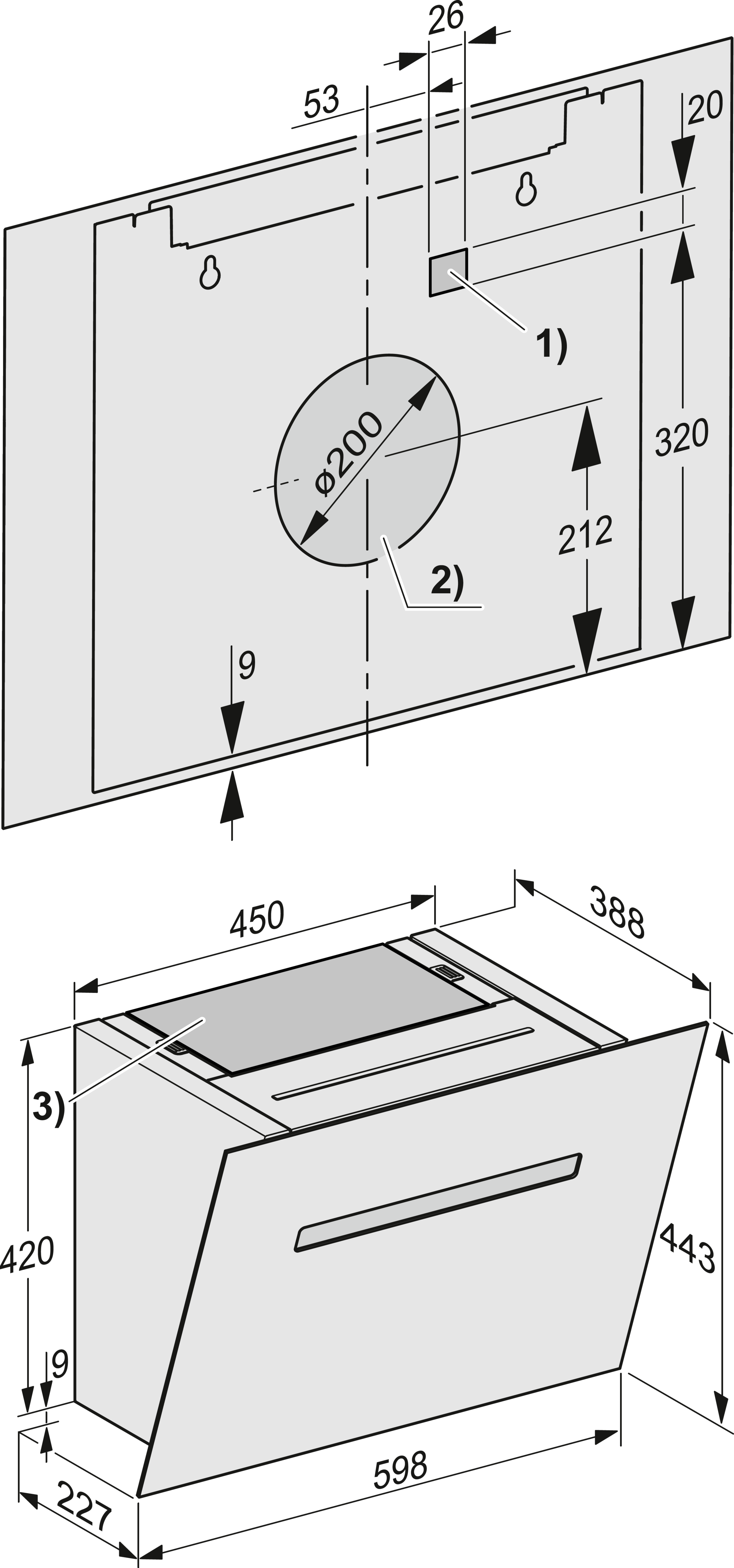 Настенная вытяжка с энергосберегающим светодиодным освещением и элегантным сенсорным управлением.