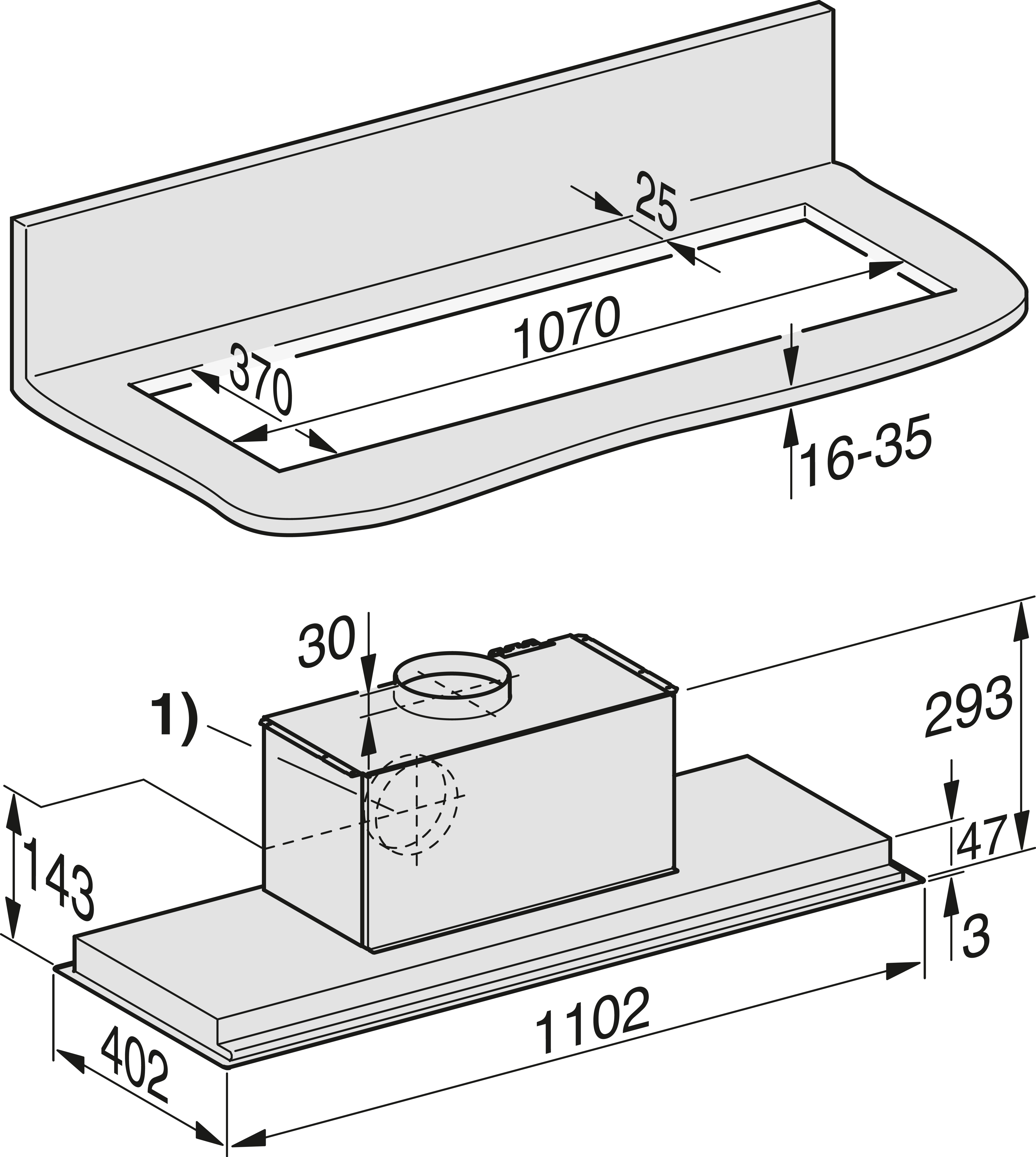 Высота корпуса вытяжки, мм