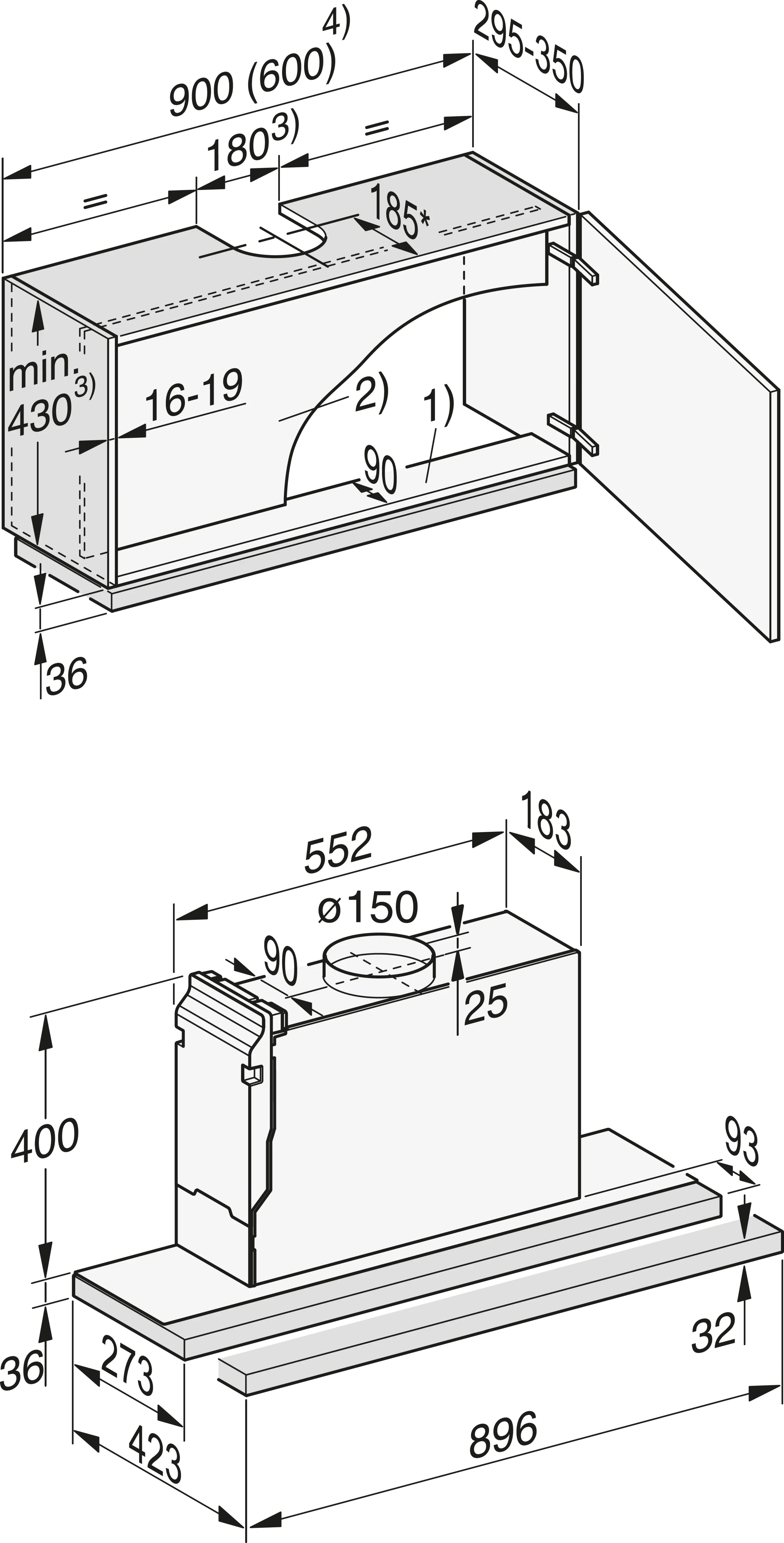 Установка встраиваемой в мебель бытовой вытяжки