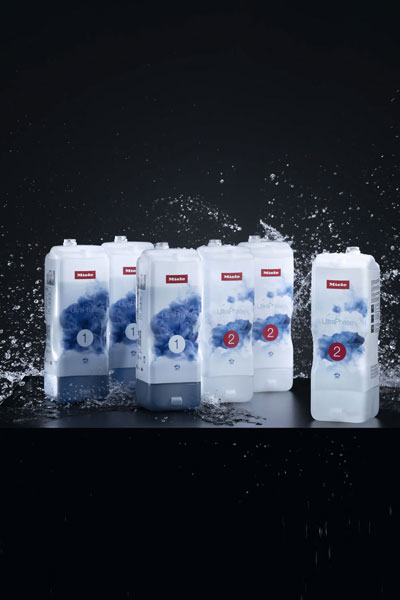 *Стиральные машины Miele с автоматическим дозированием TwinDos самостоятельно рассчитывают количество моющего средства UltraPhase в зависимости от типа белья и выбранной программы, поэтому количество циклов стирки указано примерно.